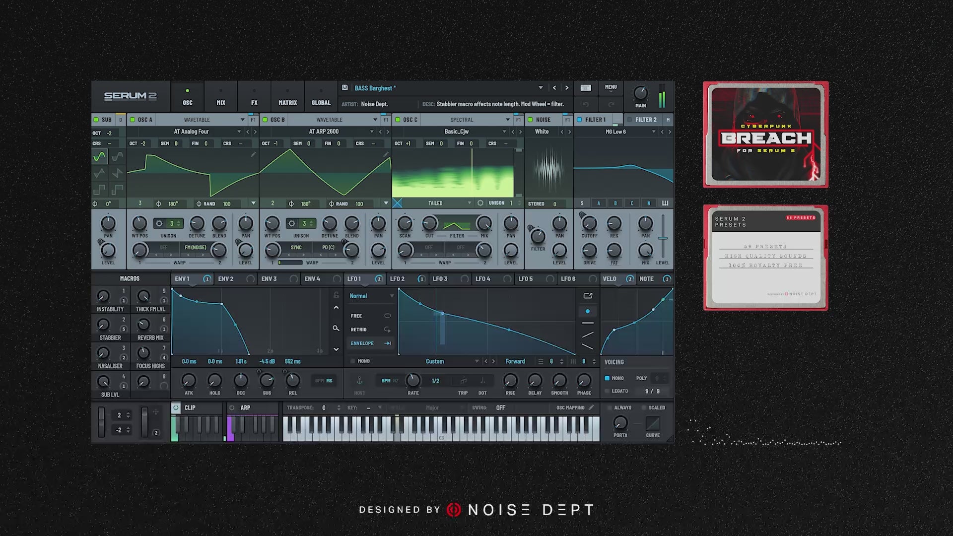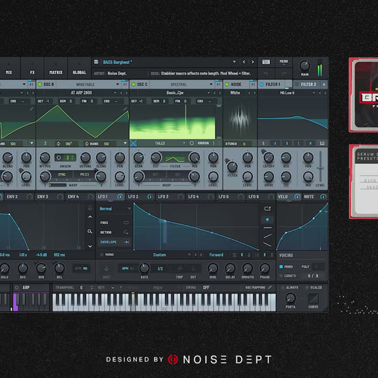 All Noise Dept presets are crafted with performance in mind. They work best with one hand on the mod wheel or macro knobs. Listen to the one-take audio demos to hear what is possible.
